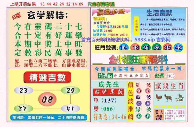 | 337期:无敌七肖【鼠羊鸡狗兔虎马】开:鸡09准 |